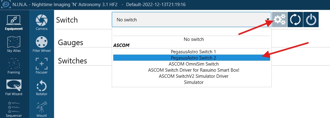 - Locate the device type that corresponds to your device (choose “Switch” if you want to connect a Powerbox or Mount if you want to connect your NYX etc)